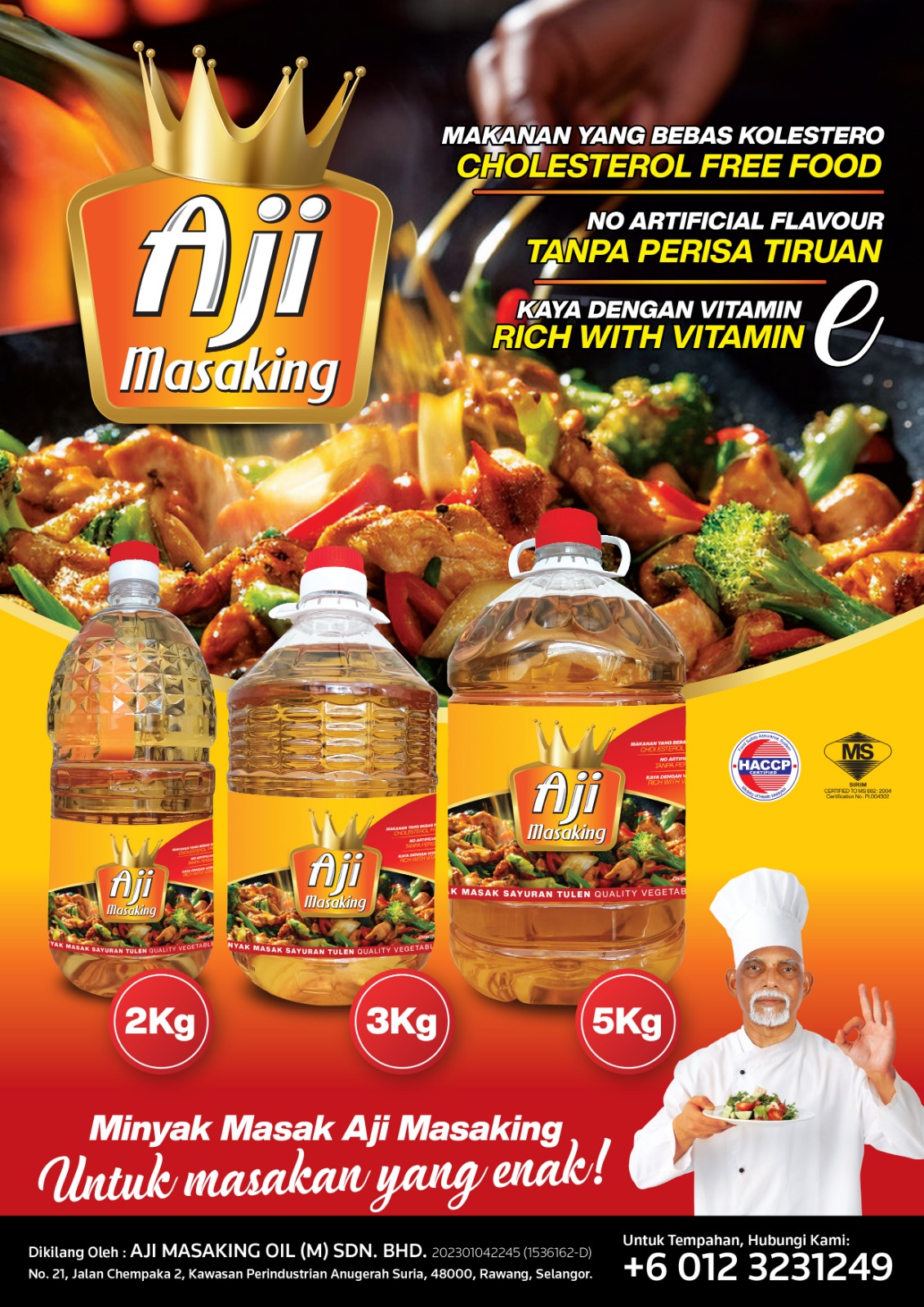 We supply large volumes of Aji Masaking cooking oil to restaurants, food factories, and distributors across Malaysia.